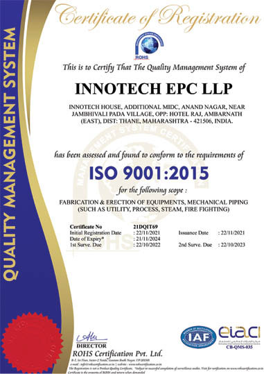 We are glad to introduce INNOTECH EPC LLP having their Factory & Office Set Up in Addl MIDC, Ambarnath (E), Dt: Thane (Factory area around 7000 Sq. Ft & Office area around 3000 Sq. Ft). We are also into Manufacturing of Pharma Equipments, and other major Fabrication Works such as Pressure Vessels, Heat Exchangers, Reactors, Storage Tanks, Chimney etc.